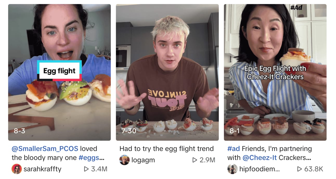 TikTok trend took the concept of the deviled eggs and opened the door to any possible combo, without all of the effort. Take a lineup of eggs and top with with any condiment, garnish, or ingredient, without having to scoop out the yolk and pipe it back in.