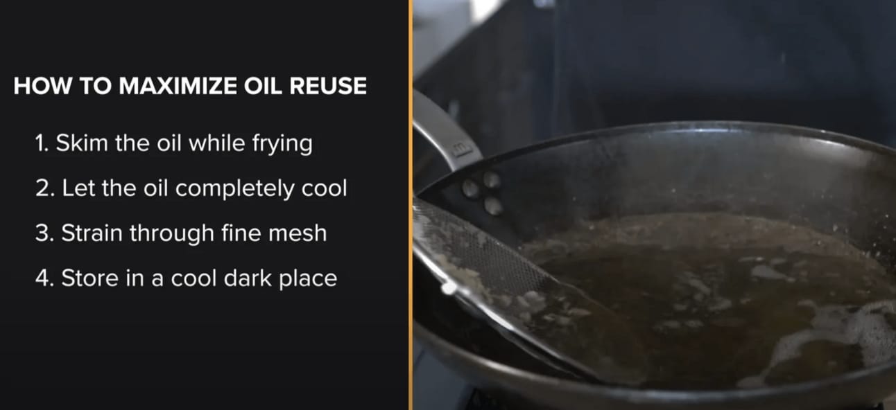 Regardless, a requirement for reusing frying oil a few times is to clean it. Here’s how we do it: