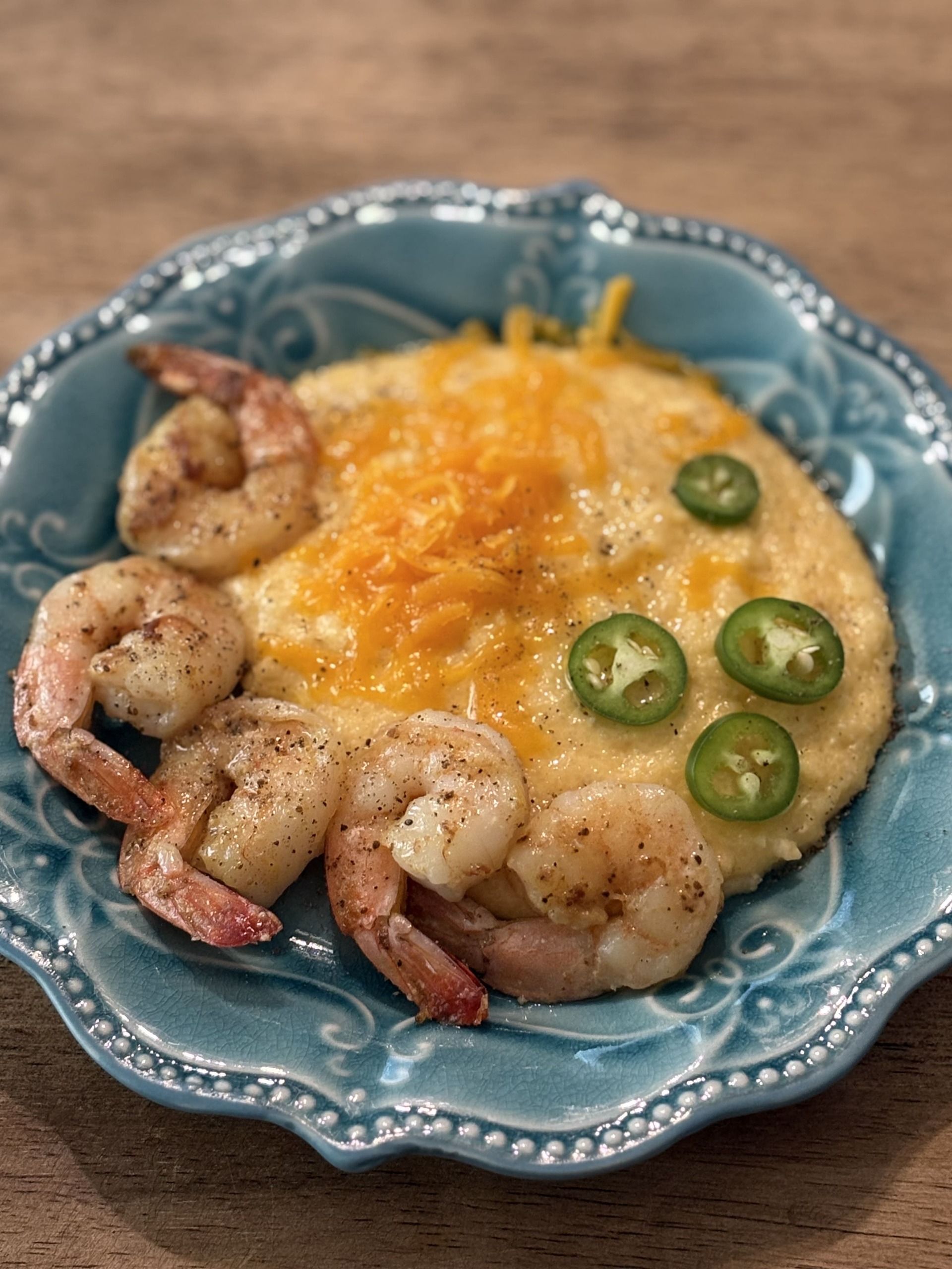This week’s dinner winner is Elliot W., who made these delicious shrimp and grits with cheese and jalapeños.